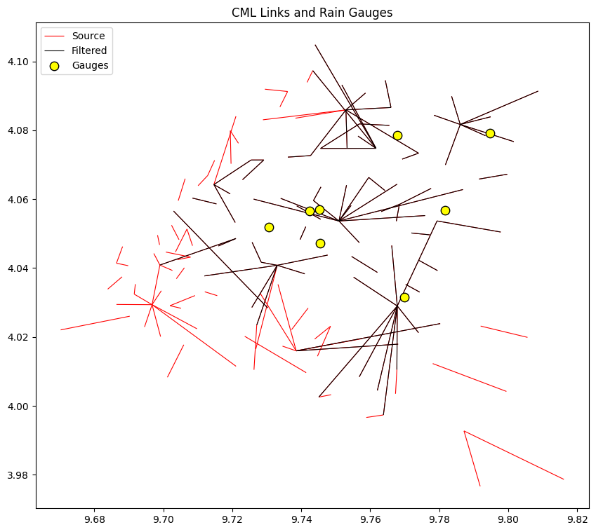 cml, gauges = open_cml_sample(),open_gauge_sample()Filter multisensor data